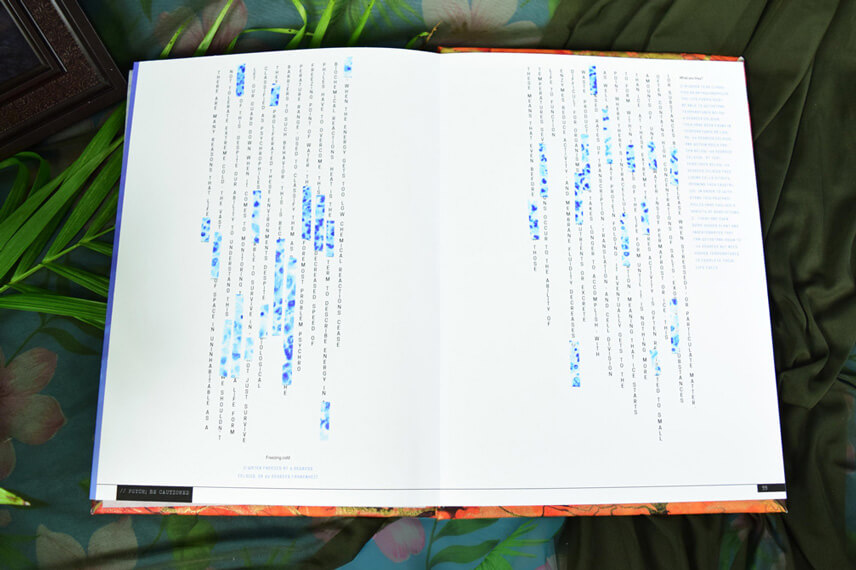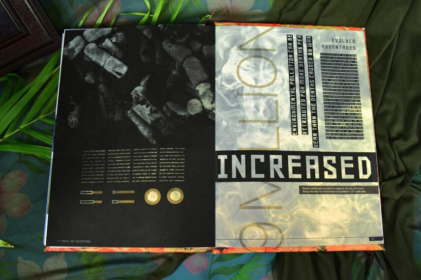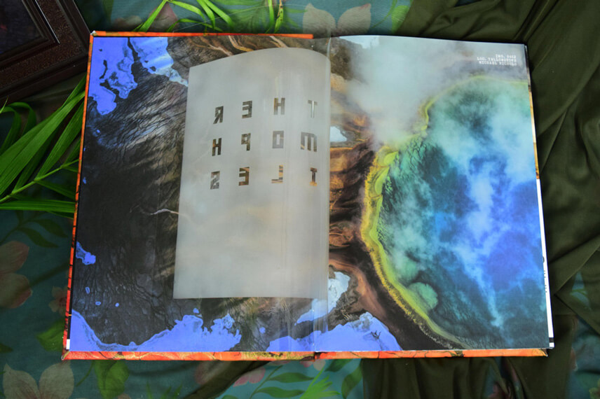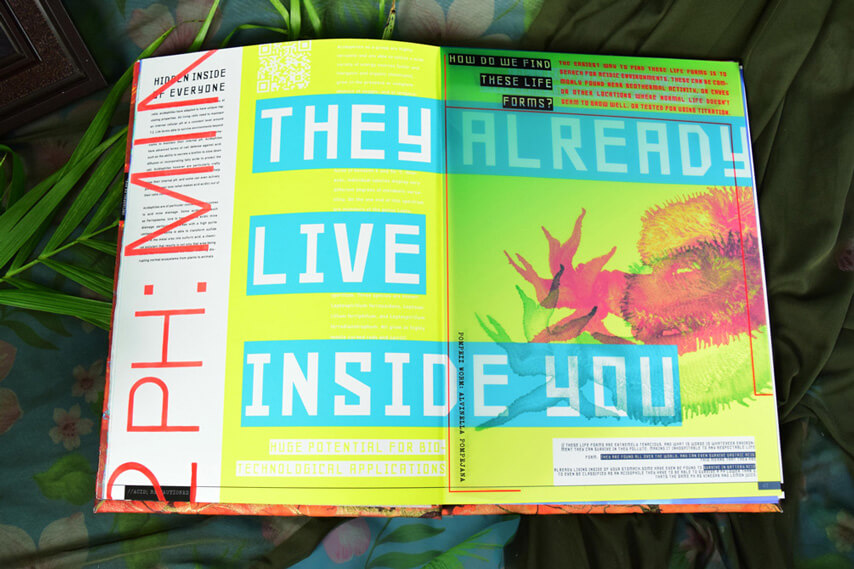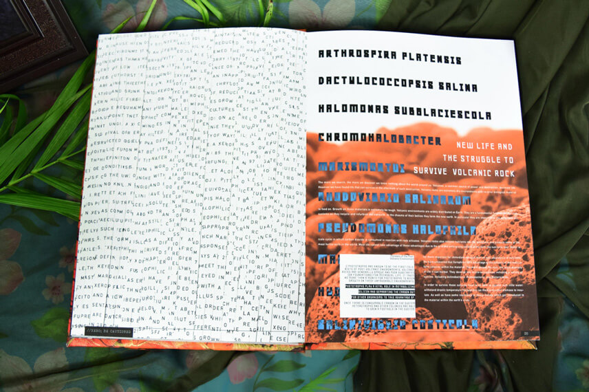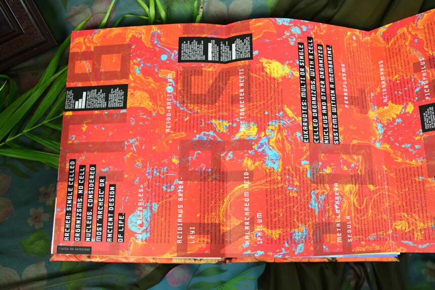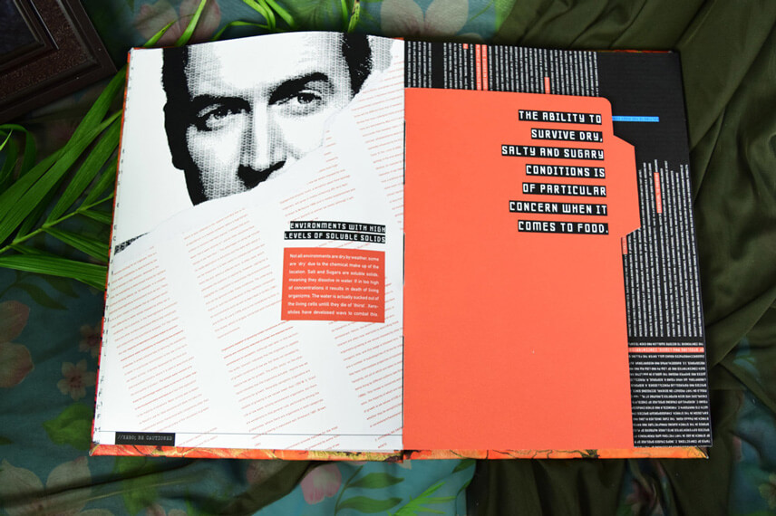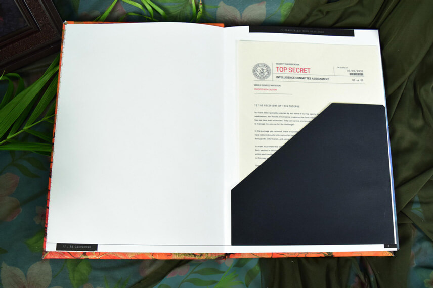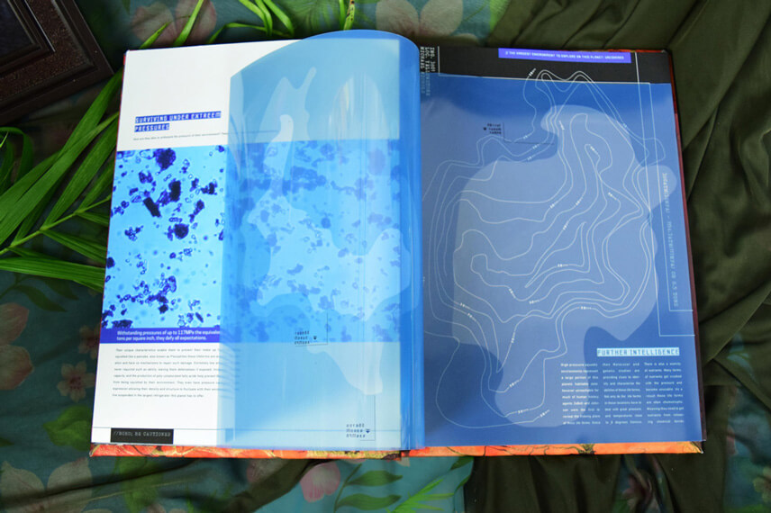 Designed and built this book has it all, translucent overlays, hidden text that needs blacklight to see, pullouts and puzzles. Book chapters coincide with the app allowing for parallel play, and the ability to access secret sections. The book is designed to come with a black light and playing cards to make a game out of the knowlege learned.
